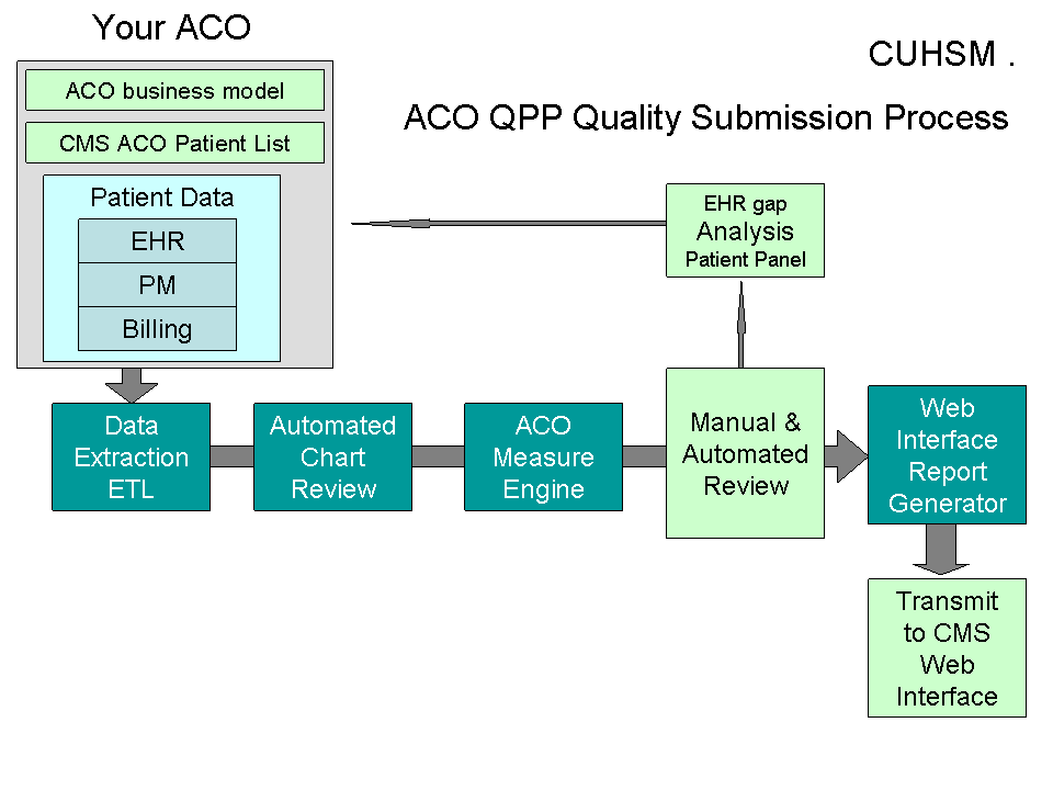We have teamed up with clinicians and HIT specialists to provide secure, fully vetted CMS QPP submission compilation services.   Our process is EHR vendor neutral in order to seamlessly merge with your ACO's current HIT processes and vendors.